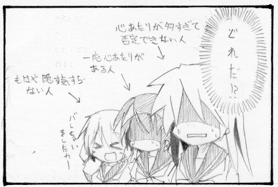 >オチがヒドイww このあとこなたとかがみの取っ組み合いののケンカ→いつしか二人でニャンニャンの流れですか? w